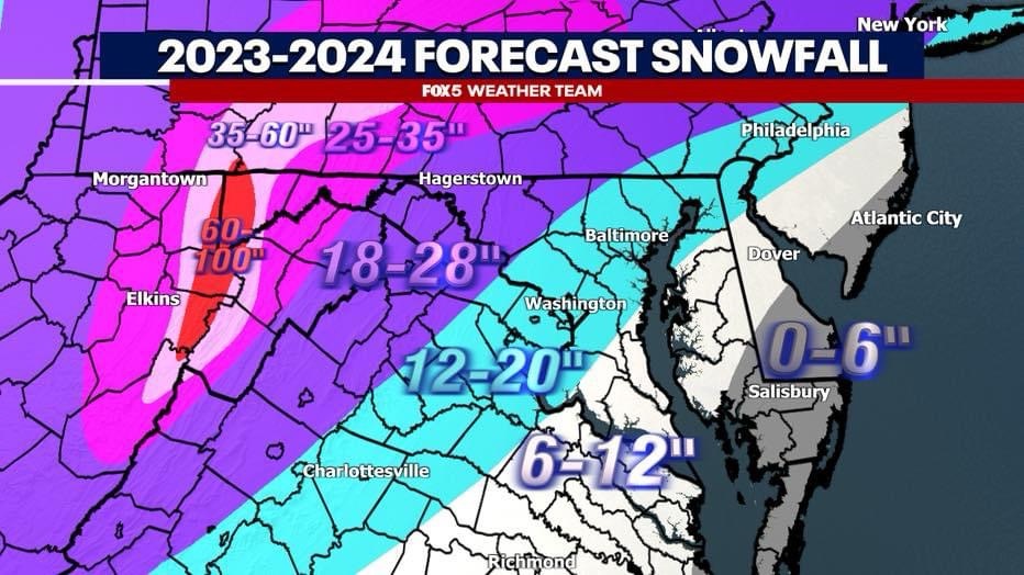 Snow accumulation forecasts for the upcoming winter season are beginning to roll out. Here is one forecast shared by the FOX5 weather team: