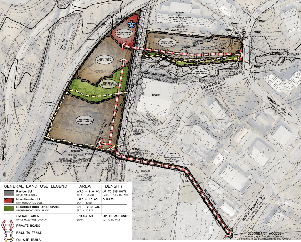 According to the minutes from the Mayor and Board of Aldermen Regular Public Meeting on 10/3, developer Standard Communities received approval to combine two adjacent parcels and rezone the entire site as 11.54 acres of Mixed Use floating zone. This zoning change allows the developer to proceed with the submitted master plan.