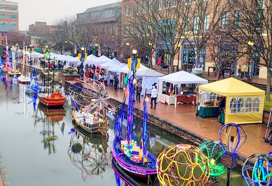 Join us for a festive and fun-filled event at Carroll Creek Park in Frederick, Maryland. The Frederick Holiday Market is the perfect place to get into the holiday spirit. With a wide variety of vendors and artisans, you’ll find unique gifts, and treats. Be sure to stop by and meet Santa Claus! He will be available for photos at no cost. While shopping, you can enjoy decorated sail boats on the creek.