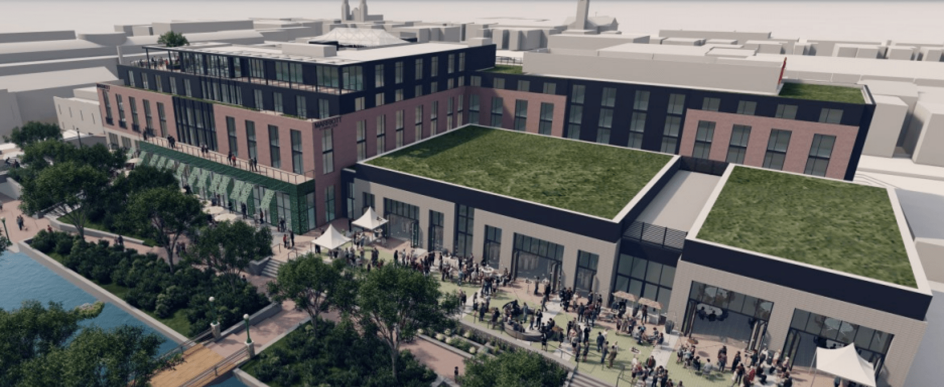 The proposed Frederick Downtown Hotel and Conference Center, set to be built along Carroll Creek at the intersection of East Patrick and South Carroll Streets, will be a 208-room Marriott-branded facility developed by Plamondon Hospitality Partners. According to reports, the developer will invest approximately $70 million of the project’s estimated $100 million total cost.